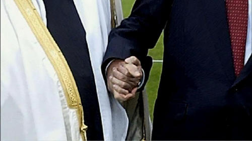 Because that's how much the Saudi royals and their associates have given the Bush family, their friends and their related businesses in the past three decades. [George H. W. Bush] Seems like a very nice reunion with friends. Shiny happy people holding hands Shiny happy people holding hands