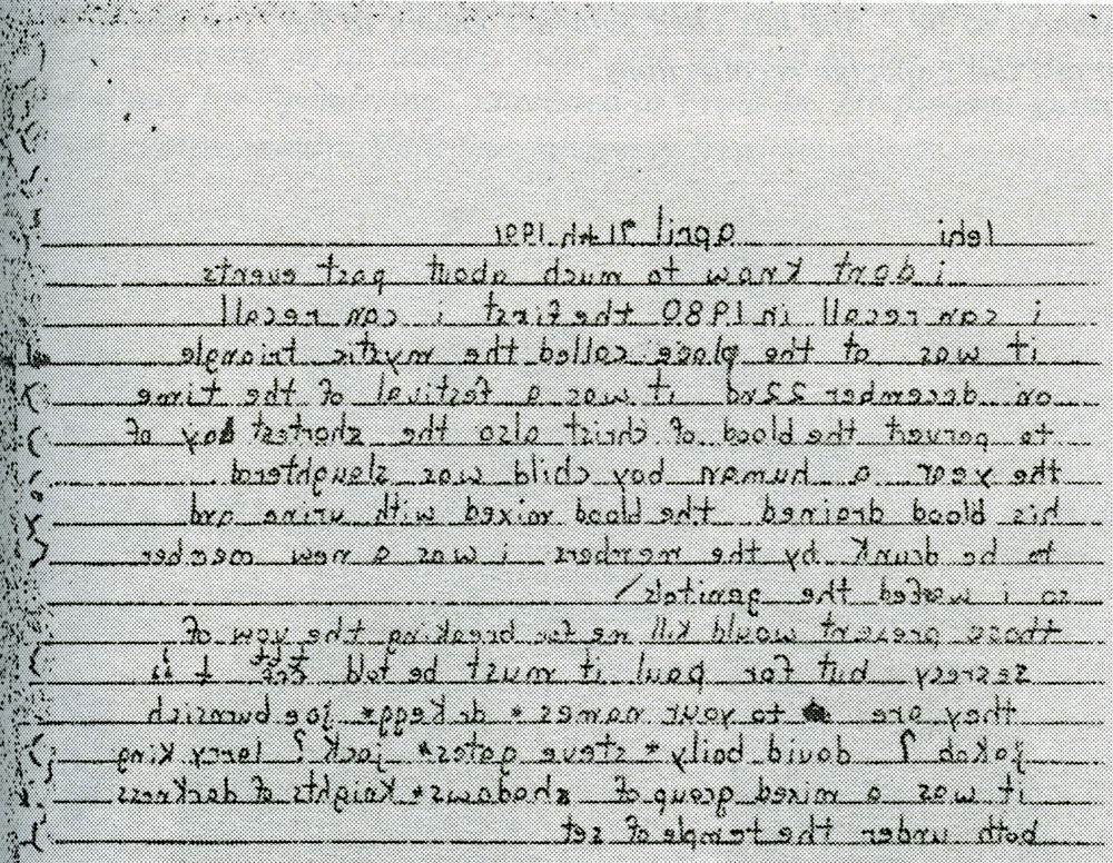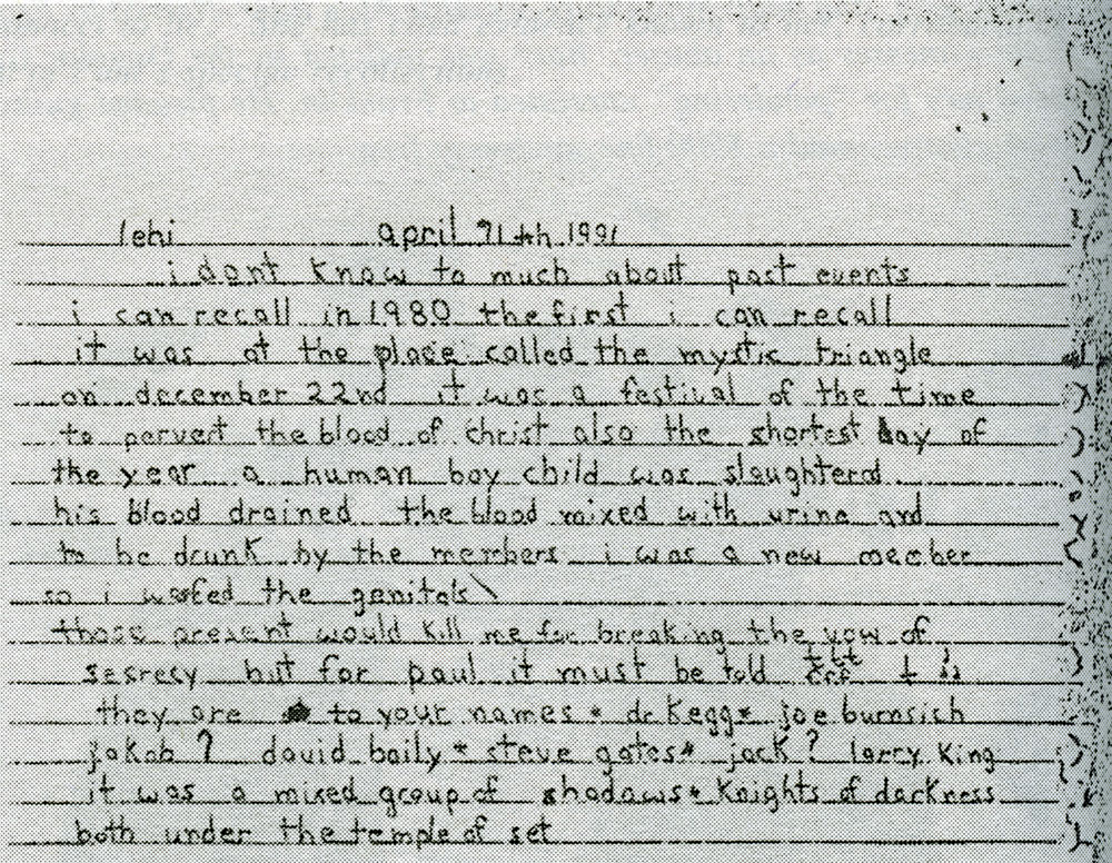 written by one of Paul Bonacci's personalities, who experienced Satanic