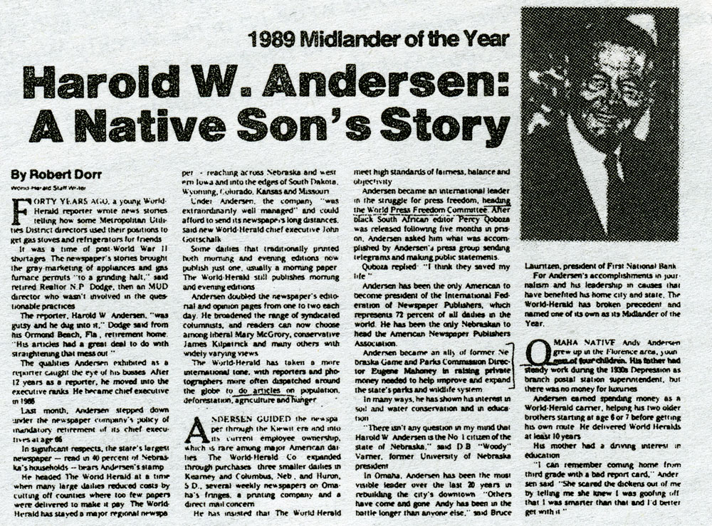 World-Herald often puffed its (now retired) publisher Harold Andersen,