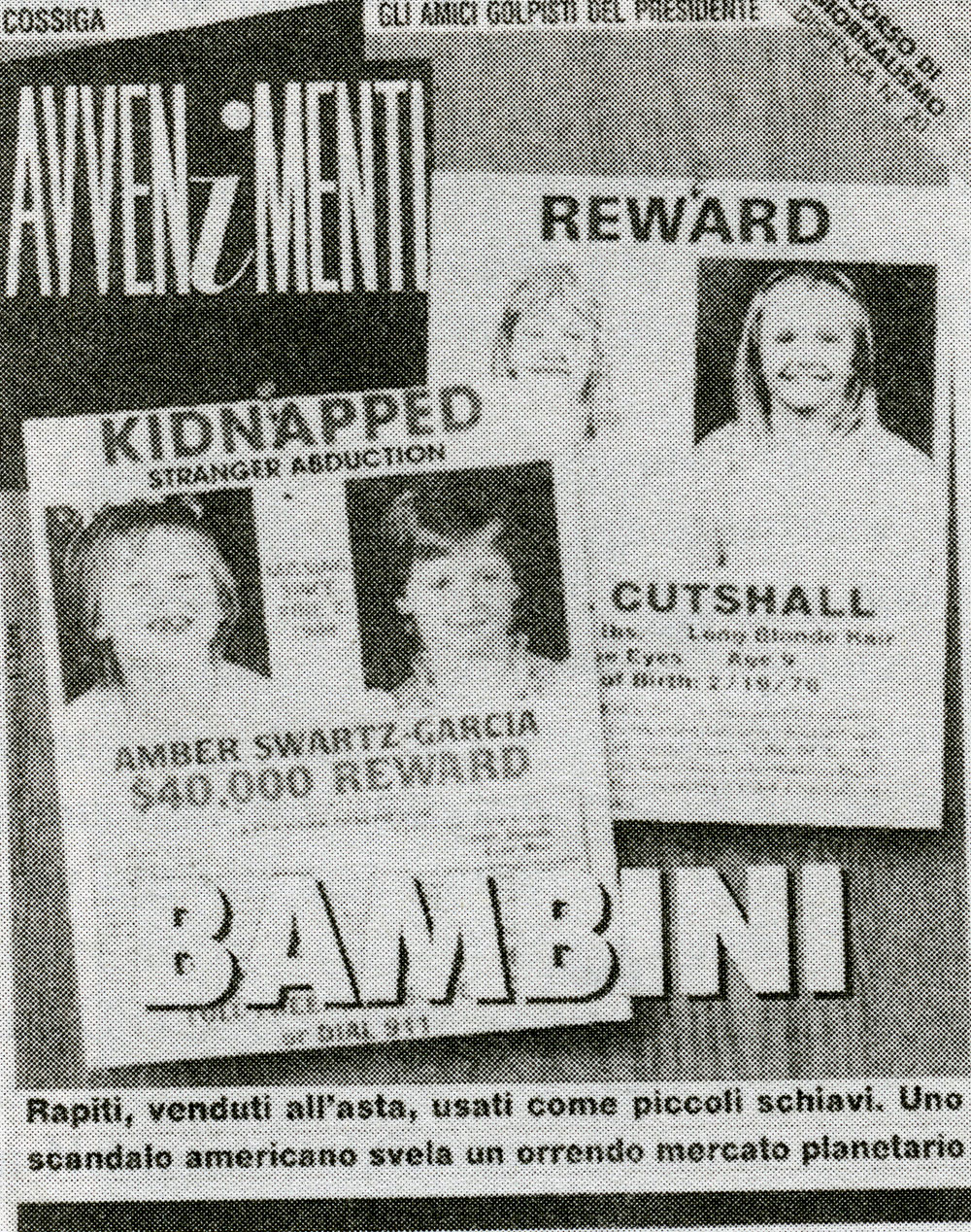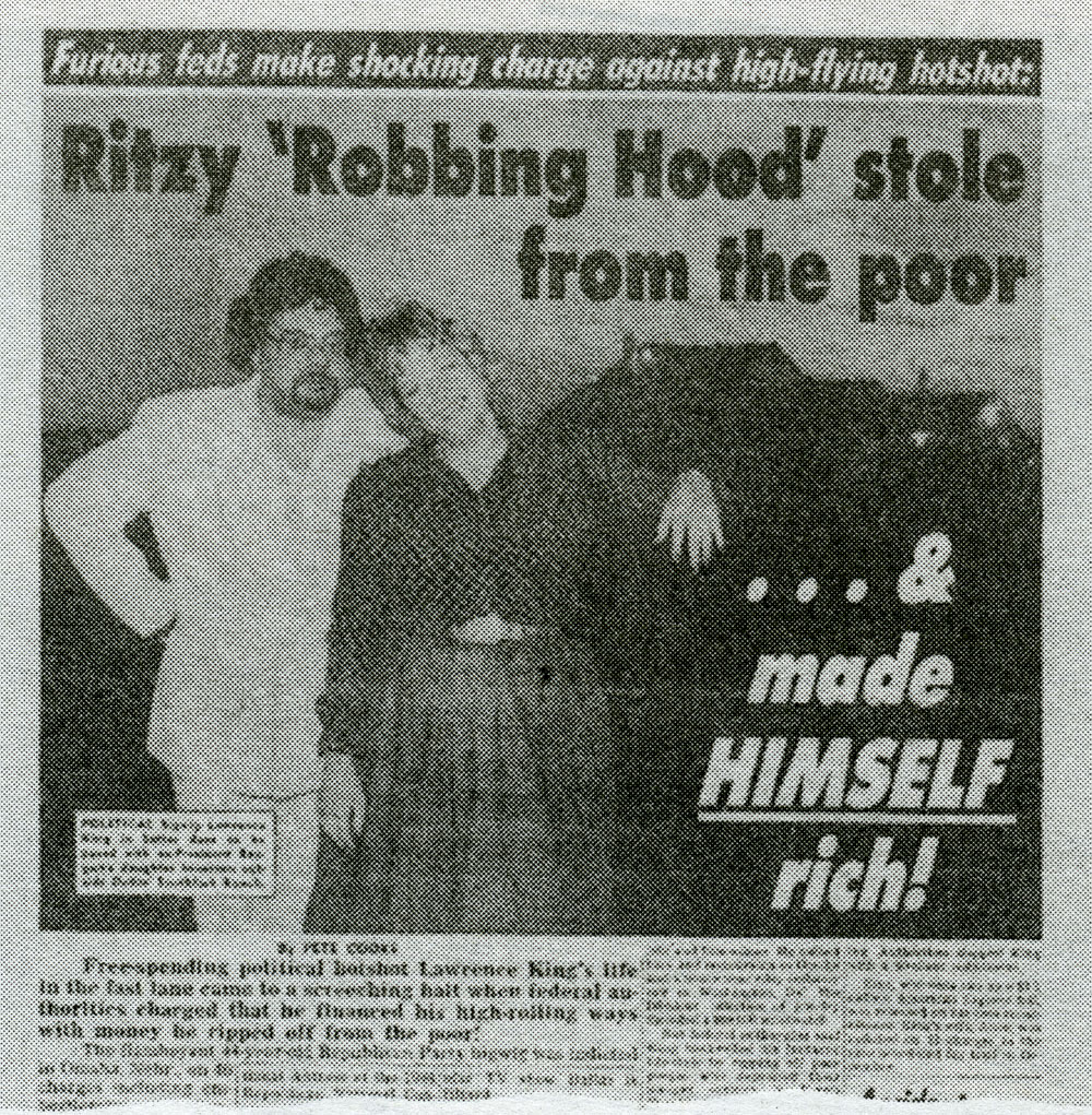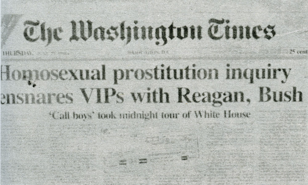 Larry King's party-giving at the Republican national conventions was the stuff of tabloid headlines, as this write-up in the Weekly World News of July 25, 1989 showed. The picture shows King with Maureen Reagan at his 1984 convention party at Southfork Ranch, near Dallas. House on California Avenue, off "Embassy Row" in Washington, D.C., rented by Larry King for $5,000 a month. King's parties here were attended by officials of the Reagan-Bush Administration and members of Congress from both parties, according to witnesses. The front page of the Washington Times, June 29, 1989. Homosexual prostitution inquiry ensnares VIPs with Reagan, Bush In a July 5, 1989 follow-up story, the Washington Times highlighted the connections of Craig Spence, central figure in the Washington "call boy" scandal. According to Washington insiders, Spence ran a prostitution business with Larry King. Spence was found dead in a Boston hotel room in 1989. A 1982 press conference by David Thorstadt of the North American Man-Boy Love Association (NAMBLA), whose slogan is "Sex before 8, or it's too late." Paul Bonacci testified to being transported and abused by NAMBLA. John Gosch, Sr. with a poster of his missing son. In 1983, at the age of 12, Johnny Gosch was kidnapped while on his newspaper route in Des Moines, Iowa. In 1990 and 1991, Paul Bonacci provided dramatic new information on the Gosch case. Jill Cutshall, 9 years old, was kidnapped from her home in Norfolk, Nebraska in 1987. She was never seen again. Investigator Roy Stephens helped trace David Phelps, who was convicted of abducting her for sexual abuse. In 1991, Stephens investigated and confirmed leads provided by Paul Bonacci on other major kidnapping and abuse cases. The Italian weekly Avvenimenti, circulation 300,000, printed an explosive expose of the Franklin scandal. The authors were Italian investigative journalists, who visited Nebraska in May 1991. The Rev. James Bevel, close associate of the late Dr. Martin Luther King, Jr., leads a picket line during 1991, against the cover-up of child abuse in Omaha. An entrance to the Nebraska State Capitol. Over the door is inscribed: "The salvation of the state is watchfulness in the citizen."