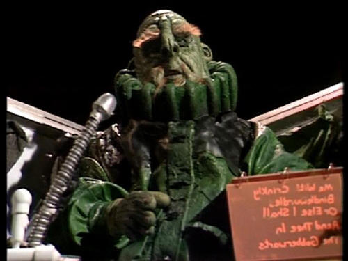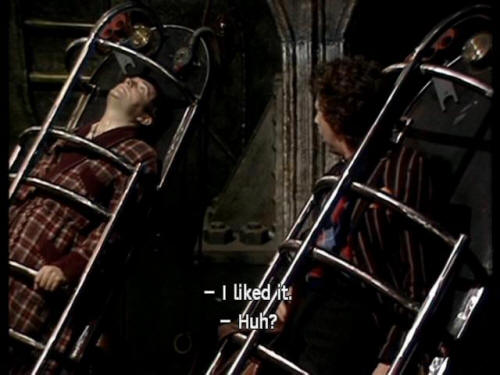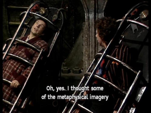 [Arthur] I liked it. Ford] Huh? [Arthur] Oh, yes. I thought some of the metaphysical imagery [Arthur] was particularly effective. [Vogon Captain] Yes? |