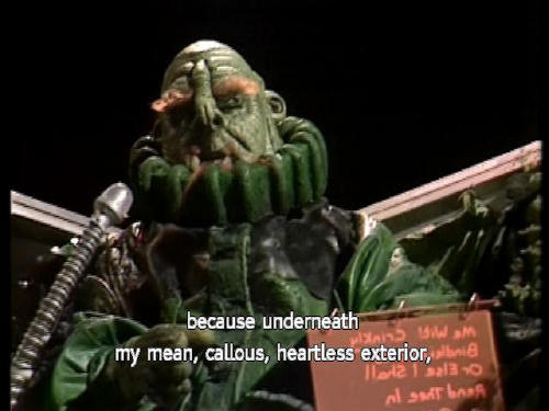 [Vogon Captain because underneath my mean, callous, heartless exterior, [Vogon Captain] I just want to be loved, is that it? [Ford] Well, I mean, yes; don't we all, deep down, underneath ... ? |