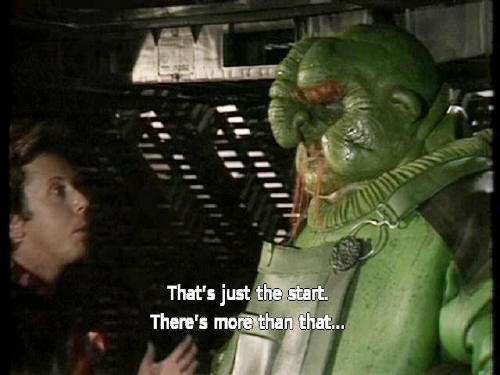[Ford] That's just the start. There's more than that ... [Vogon Guard] No, if it's all the same to you, [Vogon Guard] I'll just get you two shoved out, |