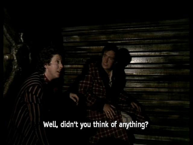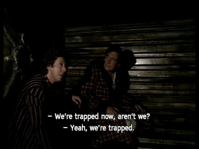[Vogon Guard] ... Nah! [Arthur] We're trapped now, aren't we? [Ford] Yeah, we're trapped. [Ford] Well, didn't you think of anything? [Ford] Yeah. [Arthur] What? |