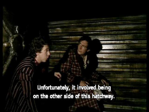 [Ford] Unfortunately, it involved being on the other side of this hatchway. [Arthur] So that's it? We're going to die? [Ford] Yeah. [Ford] Except ... no! |