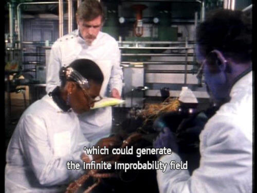 'but mostly because they didn't get invited to those sort of parties. 'Another thing they couldn't stand 'was their perpetual failure in trying to construct a machine 'which could generate the Infinite Improbability field |