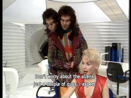 (BLEEPING) [Trillian] We picked them up while we were in Infinite Improbability Drive. [Zaphod] But that's icnredible! [Trillian] No, just very, very improbable. [Trillian] Don't worry about the aliens. Just a couple of guys, I expect. |