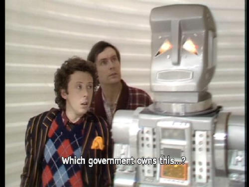 [Ford] Which govern ...? [Marvin] I hate that door. [Marvin] I'm not getting you down, am I? [Ford] Which government owns this ...? [Marvin] No government owns it. It's been stolen. |