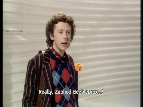 [Arthur] No one even mentioned it! [Door] Glad to be of service. [Ford] Really, Zaphod Beeblebrox ...! [Reporter] ... Reports brought to you here on the sub-etha waveband, |