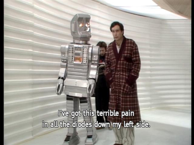 [Marvin] I've got this terrible pain in all the diodes down my left side. [Arthur] Really? [Marvin] Oh, yes. I mean, I've asked for them to be replaced, [Marvin] but no one ever listens. |