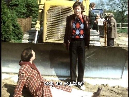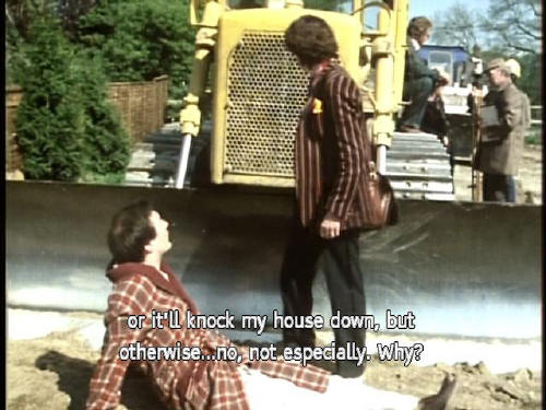 [Ford] Look, are you busy? [Arthur] Busy?! Well, I've just got this bulldozer to lie in front of, [Arthur] or it'll knock my house down, but otherwise ... no, not especially. Why? [Ford] Good. Anywhere we can talk? [Arthur] What? |