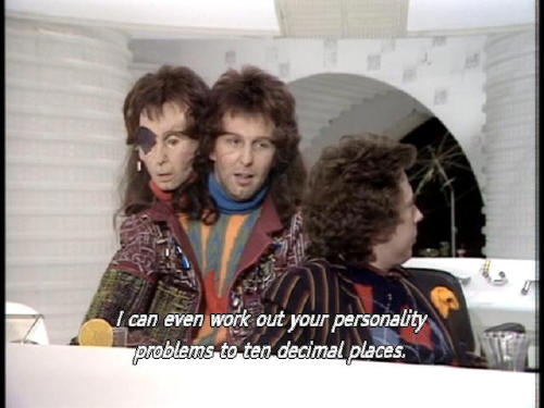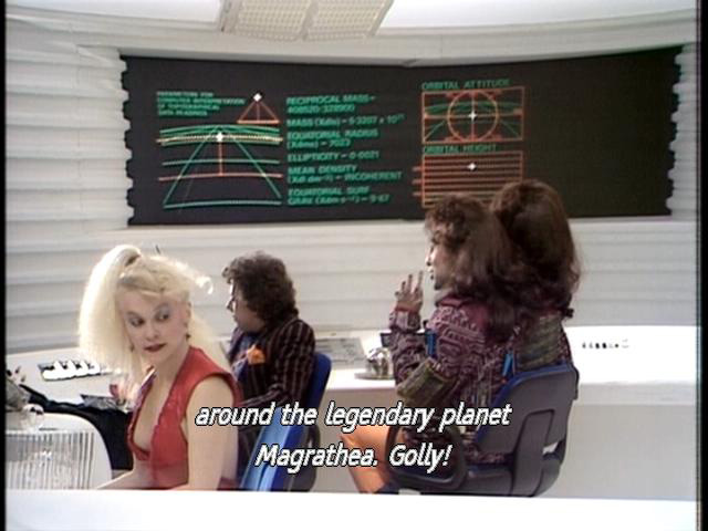 [Computer] around the legendary planet Magrathea. Golly! [Ford] Proving nothing. I wouldn't trust that computer to speak my weight! [Computer] I can do that! [Ford] No, thank you [Computer] I can work out your personality problems to ten decimal places. |