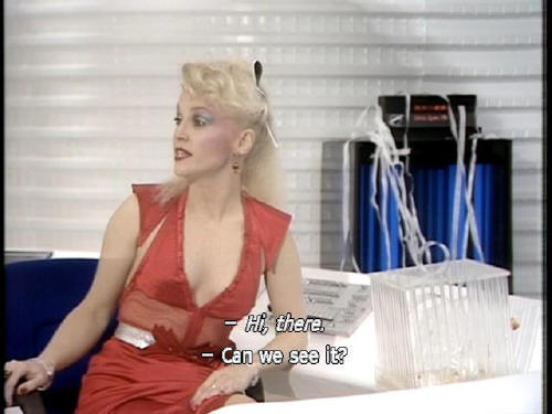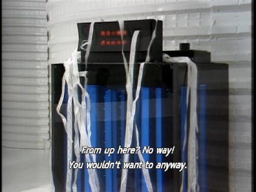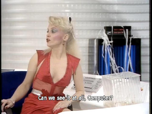 [Zaphod] Check, check, check! [Ford] Check, check, check (!) [Trillian] Can we see it at all, Computer? [Computer] Hi, there. [Trillian] Can we see it? [Computer] From up here? No way! You wouldn't want to anyway. |