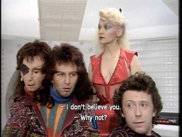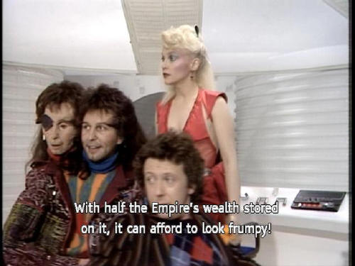 [Computer] It's just cold and grey and a whole bunch of no fun. [Trillian] Great! For this, I got my ears pierced! [Zaphod] With half the Empire's wealth stored on it, it can afford to look frumpy! [Ford] I don't believe you. [Zaphod] Why not? |