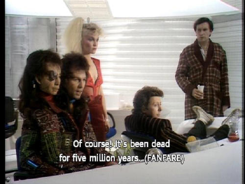 'and Zaphod's answer is wrong in every important respect.' [Arthur] Is it safe? [Zaphod] Of course! It's been dead for five million years. (FANFARE) |