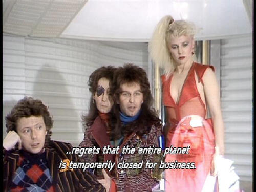 [Slartibartfast] as I'm afraid we're all out at the moment. [Slartibartfast] The Commercial Council of Magrathea ... [Zaphod] A voice from ancient Magrathea! [Ford] OK, OK! [Slartibartfast] ... regrets that the entire planet is temporarily closed for business. |