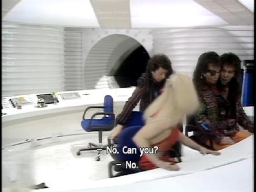 [Computer] Please call me Eddie if it will help you relax. [Zaphod] Right, Computer, I want full manual control of this ship now! [Computer] You got it. [Trillian] But can you fly her? [Zaphod] No. Can you? [Trillian] No. |