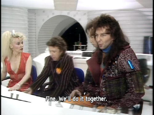 [Zaphod] Ford? [Ford] No. [Zaphod] Fine. We'll do it together. [Arthur] I can't either. [Zaphod] I'd guessed. [Zaphod] Computer, activate the manual consoles. |