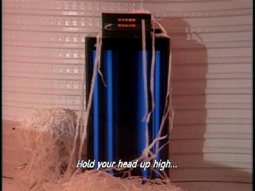 [Computer] Hold your head up high ... [Zaphod] Shut that bloody computer up! [Trillian] Zaph, do you think we can stabilise at X00 547 [Trillian] if we split our flight path |