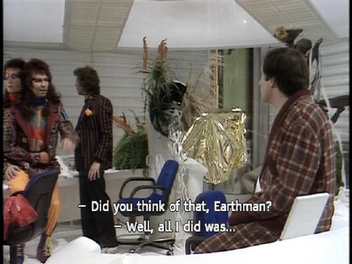 [Ford] and a very surprised-looking whale. [Computer] At an Improbability Level of 8,767,128 to 1 against. [Zaphod] Did you think of that, Earthman? [Arthur] Well, all I did was ... |