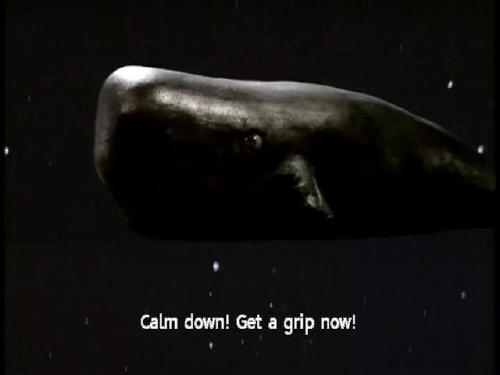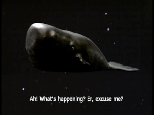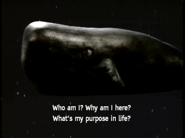 [Whale] Ah! What's happening? Er, excuse me? [Whale] Who am I? Why am I here? What's my purpose in life? [Whale] What do I mean by, "Who am I"? [Whale] Calm down! Get a grip now! |
