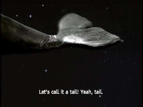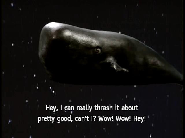 [Whale] Perhaps I can find a better name for it later ... [Whale] Hey, what's this thing? [Whale] Let's call it a tail! Yeah, tail. [Whale] Hey, I can really thrash it about pretty good, can't I? Wow! Wow! Hey! |