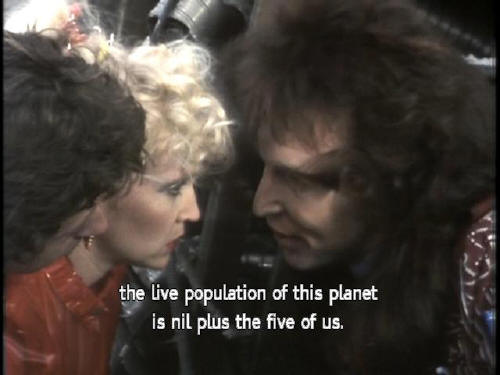 [Trillian] We've been attacked once already! [Zaphod] Look, kid, I promise you, [Zaphod] the live population of this planet is nil plus the five of us. [Zaphod] Let's get on in there, OK? |