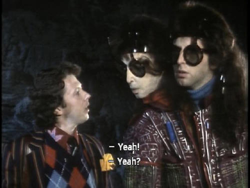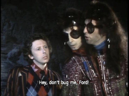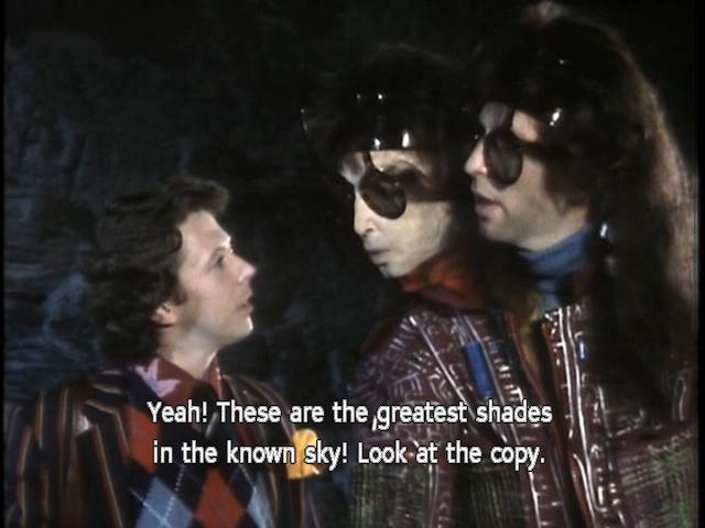 [Zaphod] Yeah! These are the greatest shades in the known sky! Look at the copy.
