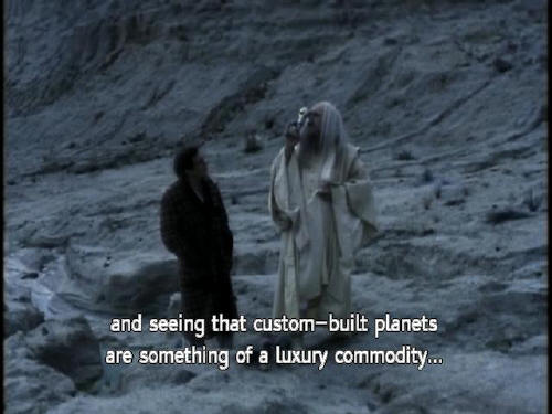 [Slartibartfast] Five million years ago, the Galactic economy collapsed, [Slartibartfast] and seeing that custom-built planets are something of a luxury commodity ... [Slartibartfast] You know we built planets? [Arthur] Well, I had sort of gathered that. [Slartibartfast] Fascinating trade. Doing the coastlines are always my favourite ... |
