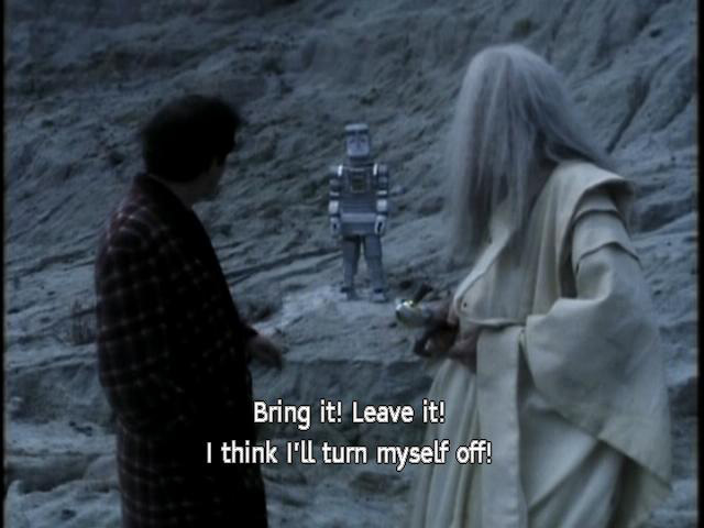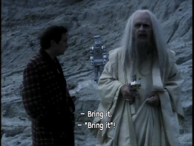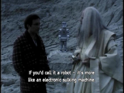 [Arthur] If you'd call it a robot -- it's more like an electronic sulking machine. [Slartibartfast] Bring it. [Marvin] "Bring it"! [Slartibartfast] On second thoughts, leave it here. [Marvin] Bring it! Leave it! I think I'll turn myself off! |