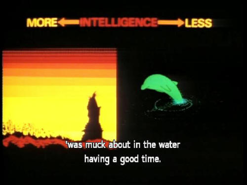 'was muck about in the water having a good time. 'The dolphins believed they were more intelligent than man 'for precisely the same reasons. 'Curiously enough, |