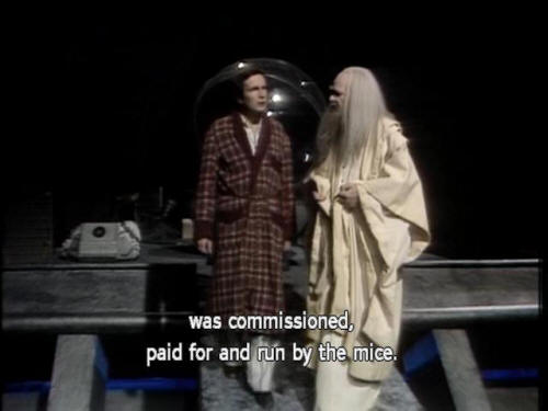 [Slartibartfast] was commissioned, paid for and run by the mice. [Slartibartfast] It was destroyed five minutes before the completion of the purpose [Slartibartfast] for which it was built. We have to build another one. [Arthur] Mice? |