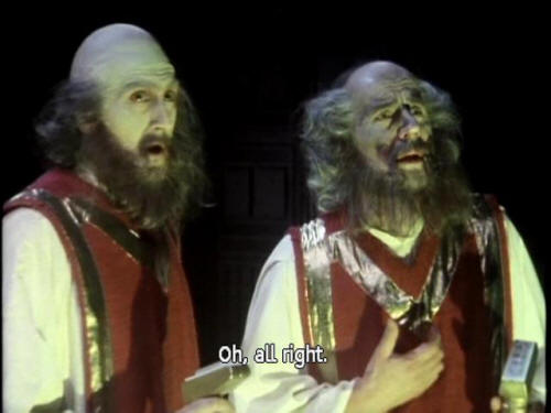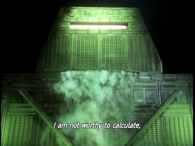 [Priest 1] I think this is getting needlessly messianic. [Computer] A computer whose merest operational parameters [Computer] I am not worthy to calculate, [Computer] but which it will be my destiny eventually to design! [Priest 1] Can we get on and ask the question? [Priest 2] Oh, all right. |