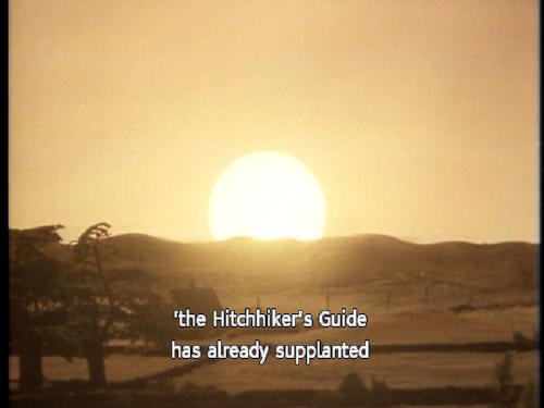 'And in many of the more relaxed civilisations 'on the Outer Eastern Rim of the Galaxy, 'the Hitchhiker's Guide has already supplanted 'the great Encyclopaedia Galactica |