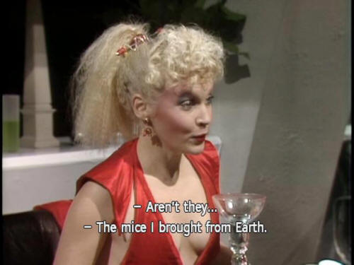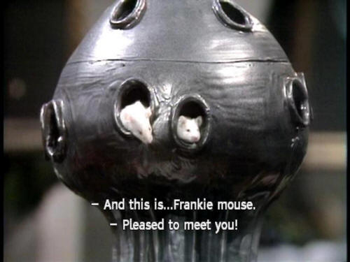 [Arthur] Yes ... sorry. I ... wasn't quite prepared for ... [Trillian] Let me introduce you. [Trillian] This is Benjy mouse. [Benjy] Hi, there! [Trillian] And this is ... Frankie mouse. [Frankie] Pleased to meet you! [Arthur] Aren't they ... [Trillian] The mice I brought from Earth. |