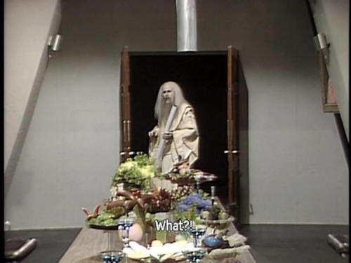 [Slartibartfast] What? [Slartibartfast] Oh, very well, I'll go and get on with some of my fjords, then. [Frankie] They won't be necessary. [Frankie] I don't think we'll be needing the new Earth. [Slartibartfast] What?! |