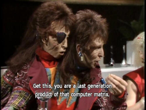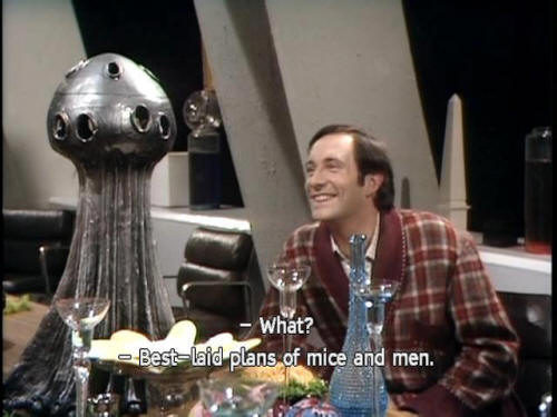 [Frankie] What? [Arthur] Best-laid plans of mice and men. [Benjy] What have men got to do with it? [Benjy] We've got to have that Question! [Arthur] I'm sorry I can't help you. Shall we be off? [Zaphod] Get this, you are a last generation product of that computer matrix. [Zaphod] You were there before your planet got the finger. |