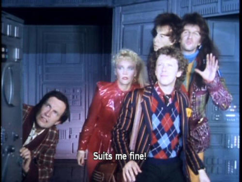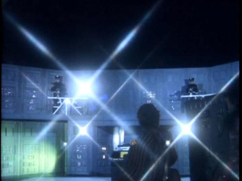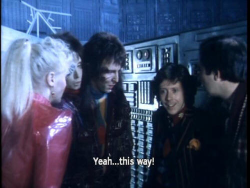 [Ford] Yeah ... this way! [Cop 2] We don't wanna shoot you, Beeblebrox. [Zaphod] Suits me fine! [Trillian] Back to the lift? [Zaphod] Back to the lift! |