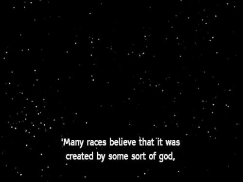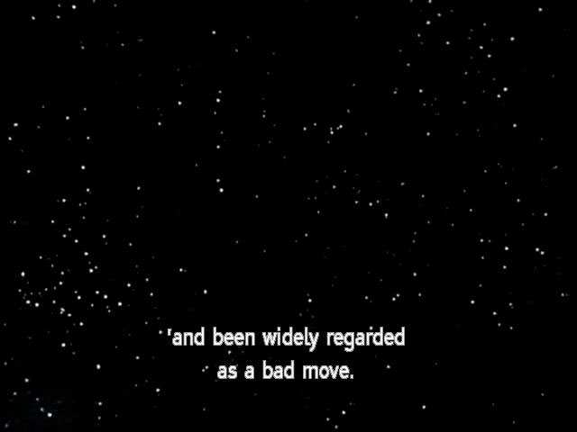 'The story so far. 'In the beginning, the Universe was created. 'This has made a lot of people very angry 'and been widely regarded as a bad move. 'Many races believe that it was created by some sort of god, |