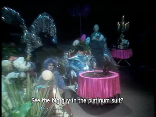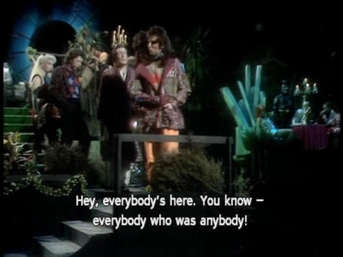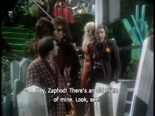 [Zaphod] Hey, everybody's here. You know -- everybody who was anybody! [Zaphod] Hi, guys! How did you do? [Crowd] Hi! [Ford] Hey, Zaphod! There's an old mate of mine. Look, see! [Ford] It's Hotblack Desiato! [Ford] See the big guy in the platinum suit? |