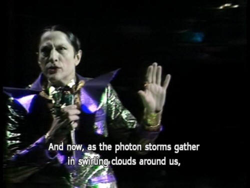 [Host] Is everybody having one last wonderful time? (EVERYONE CHEERS) [Host] Good. [Host] And now, as the photon storms gather in swirling clouds around us, |