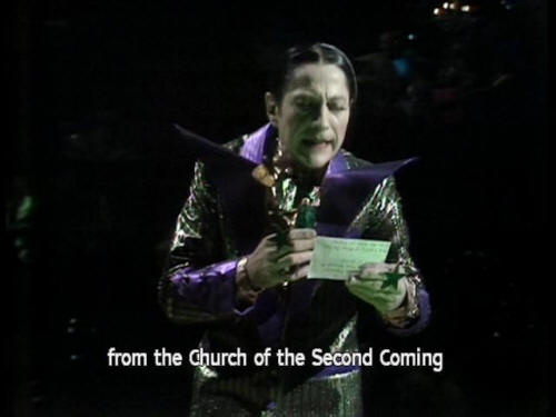 [Host] from the Church of the Second Coming [Host] of the Great Prophet Zarquon. (CHEERS) [Host] Still waiting for the second coming. [Host] Well, fellas, let's hope he hurries. He's got eight minutes left! |