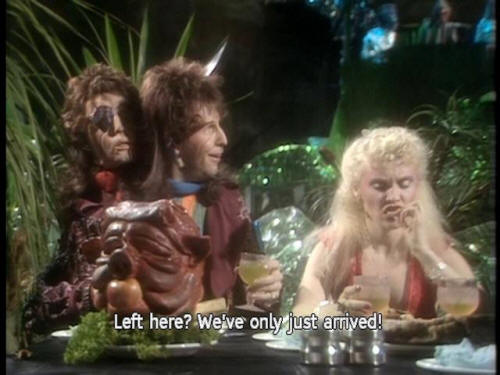 [Waiter] You left here somewhat precipitately. [Zaphod] Left here? We've only just arrived! [Waiter] Indeed, sir, [Waiter] but before you arrived here, you left. [Zaphod] You're saying that before we arrived here, [Zaphod] we left here? |