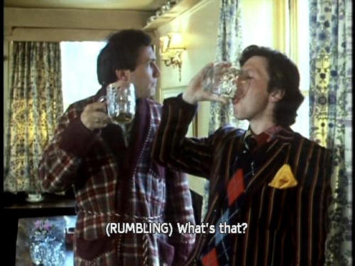 'Arthur Dent, too, had other things on his mind.' (RUMBLING) What's that? [Ford] They haven't started yet. [Arthur] Good. [Ford] Probably your house. [Arthur] What? |