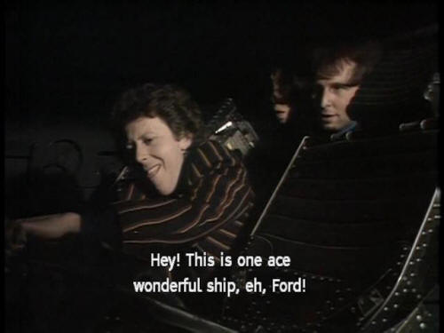 [Arthur] Well, this is very pretty, I must say! [Trillian] Yeah, I like a change of scene! [Zaphod] Hey! This is one act wonderful ship, eh, Ford! [Ford] Yeah. [Ford] Pity it doesn't seem to work, isn't it? |