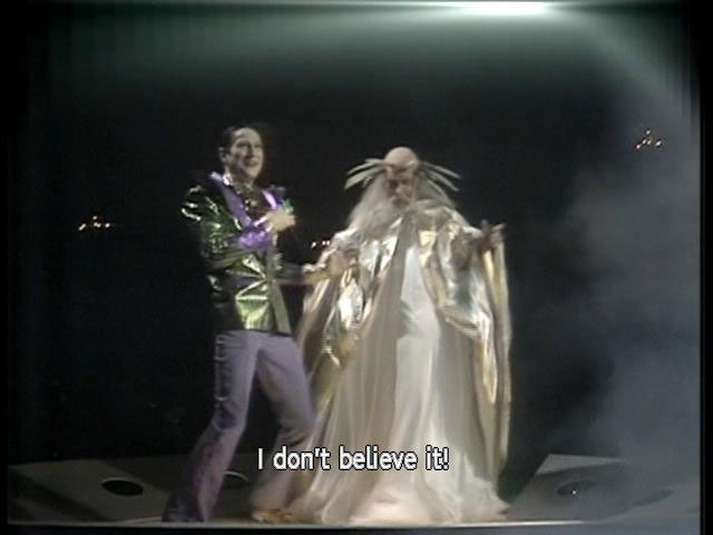 [Max] What's this? What's happening? Who's this? [Max] I don't believe it! [Max] Ladies and gentlemen, a big hand, please, [Max] for the Great Prophet Zarquon! (CHEERS AND APPLAUSE) |