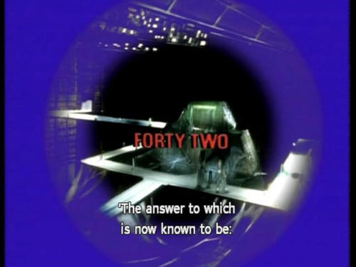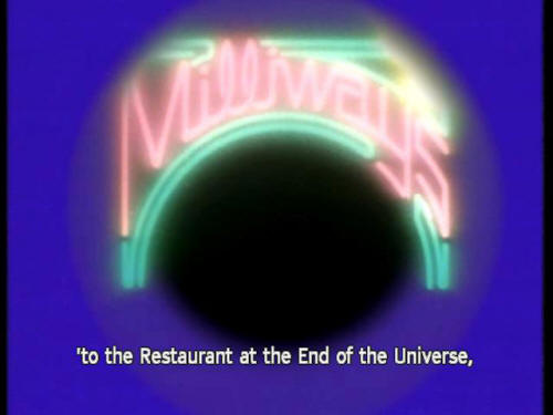 'The answer to which is now known to be: FORTY TWO 'He and his companions have been blasted far forward in time 'to the Restaurant at the End of the Universe, 'from which they're returning in a ship |
