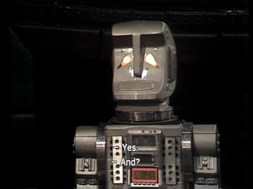 [Marvin] Yes. [Arthur] And? [Marvin] It amazes me how you manage to live in anything that small. [Arthur] Abuse! [Zaphod] Ignore him, he's only making it up. [Marvin] Making it up? Why should I want to do that? |