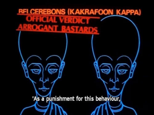 'The Belcerebons used to cause great resentment amongst neighbouring races 'by being one of the most enlightened, accomplished 'and, above all, quiet civilisations in the Galaxy. 'As a punishment for this behaviour, 'which was held to be offensively self-righteous and provocative, BFI CEREBONS (KAKRAFOON KAPPA) |