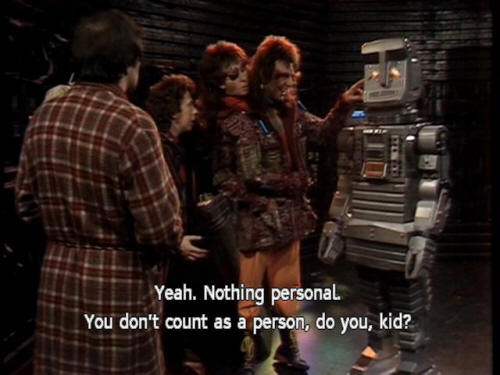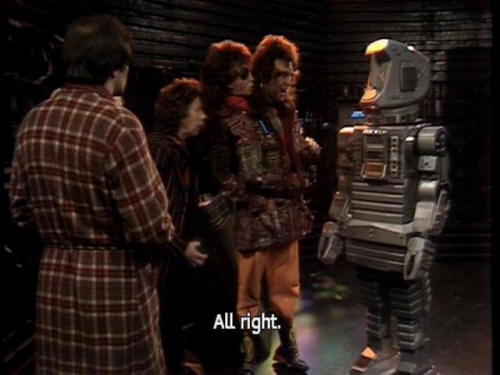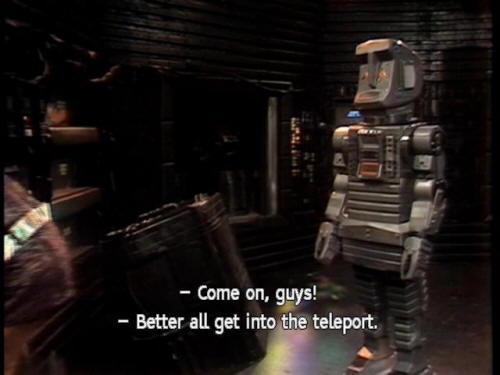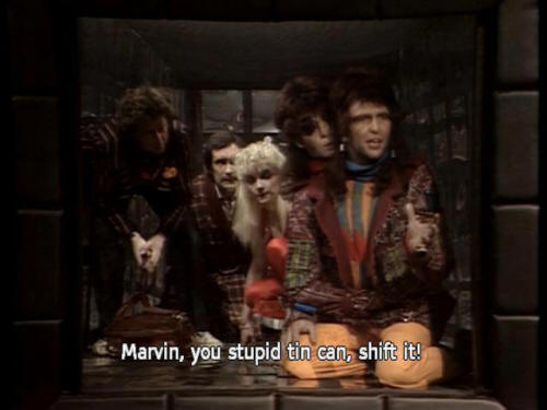 [Zaphod] Yeah. Nothing personal. [Marvin] All right. [Zaphod] Come on, guys! [Marvin] Better all get into the teleport. [Zaphod] Marvin, you stupid tin can, shift it! [Zaphod] We really appreciate this. |